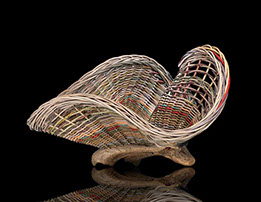 I have been a gatherer and a maker of things since I can remember. My daughter says I collect debris. I do, and when I use a piece of wood from my collections as a basis for a weaving, a basket begins to grow, first, in my imagination and then in front of me as I weave. It is at this point that I begin to attend to the wood and the way it influences the weaving. As it grows, I learn from the interaction of the wood with the reed what needs to be added, indented, or deleted in order to preserve the integrity of the piece. The work throughout the weaving is a beautiful process of focus and change.